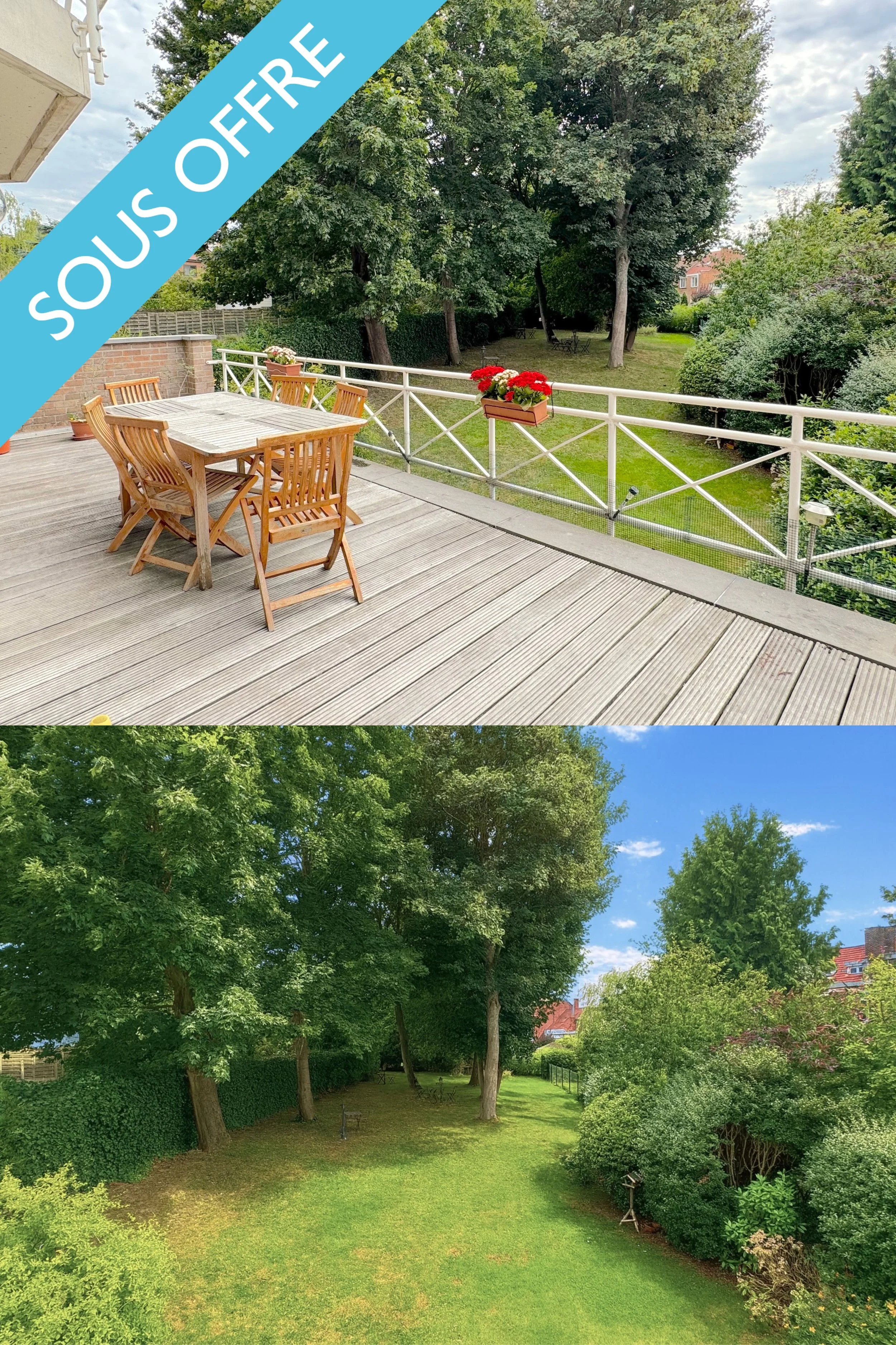 Idéalement situé dans une petite copropriété de 4 appartements construite en 2004, à seulement 250 mètres de la place Dumon, très bel appartement de ±153 m² (selon PEB) avec magnifique TERRASSE exposée SUD-OUEST de ±28 m² et vaste JARDIN arboré à usage privatif de près de 6 ares (±600 m²).